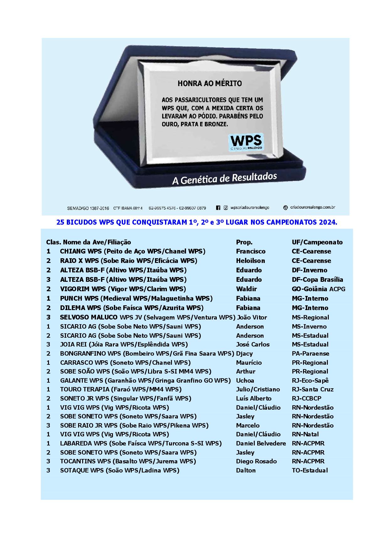 Conheça os Campeões WPS 1°-2°-3° pelo Brasil